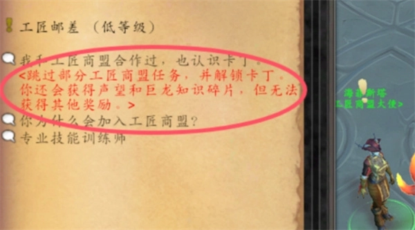 在此處,會有“跳過部分工匠商盟任務(wù)鏈”這一選項,為加快后續(xù)流程的推進,請務(wù)必選擇此項。