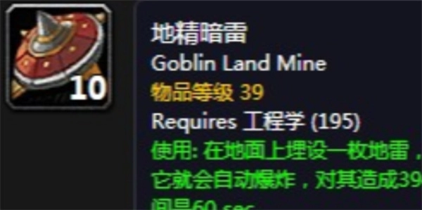 用途:運用工程學(xué)制作地精暗雷,埋設(shè)之后會自動引發(fā)爆炸,能夠造成一定范圍內(nèi)的傷害。