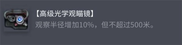 將觀察半徑增大10%,但最大偵查距離上限為500米。鑒于CDC本身就具備卓越的視野潛力,與光學(xué)鏡配合后,它能夠在未點(diǎn)燈的情形下,搶先察覺(jué)到敵人,尤其適用于側(cè)翼穿插以及拉點(diǎn)觀測(cè)。