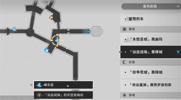 開啟地圖,選定「浴血戰端」區域內的懸鋒城 - 琢石區傳送點,隨后前往該地點。