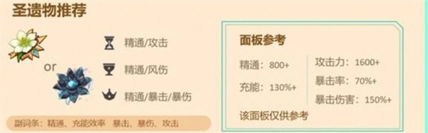 在詞條選擇上,對于副C,建議主要堆疊精通屬性,裝備選擇精通沙漏、精通杯子以及精通或雙暴頭冠。而主C的話,應選擇攻擊沙漏、風傷杯和雙暴頭冠。在副詞條的選取方面,優先考慮精通與充能效率,其次才是攻擊力和雙暴屬性。