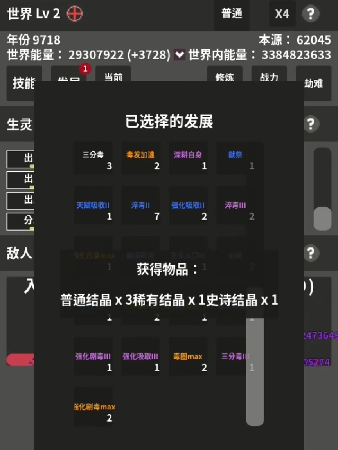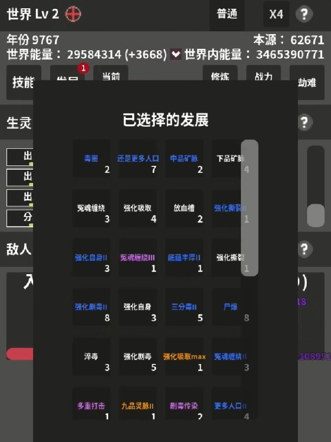 當世界能量趨于穩定,具備一定“毒”的條件后,便能夠增加人口數量,人口增長可按一定量或者百分比進行。與此同時,壽命也會得到相應提升。