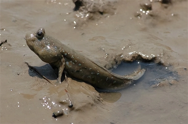 彈涂魚身為魚類,卻是為數不多能夠長期在陸地上生存的魚類之一。它們通常棲息在潮間帶的泥灘以及紅樹林地區,借助胸鰭在泥地上“行走”,而且還能夠經由皮膚和口腔黏膜進行氣體交換,從而在陸地上自如地活動與覓食,堪稱真正實現“上岸生活”的魚類典型。