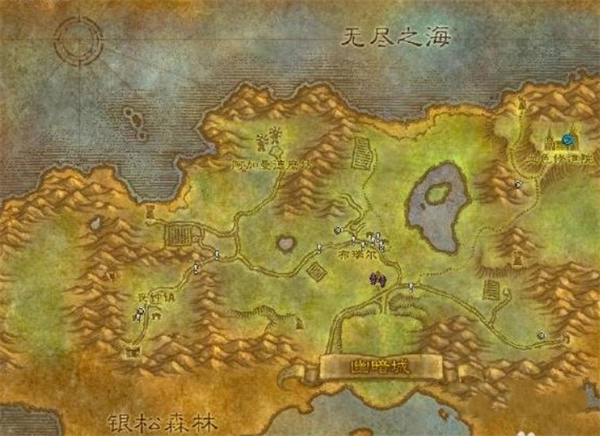從提瑞斯法林地左下角的道路啟程,持續(xù)前行便能抵達(dá)銀松森林。