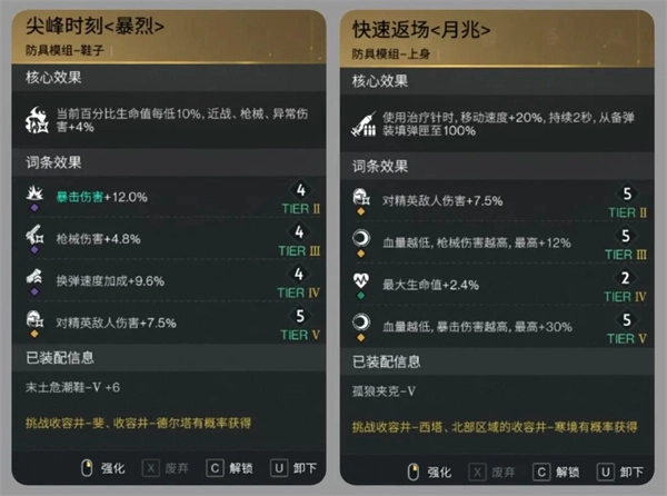 模組可被看作是“戰斗芯片”,能夠植入到角色的裝備與武器里,為其增添額外屬性。模組依據品質劃分為綠、藍、紫、金這四種類型,品質越高的模組所附帶的小詞條就越多,這會直接對屬性成長產生影響。在這些模組中,金色模組能夠攜帶4個小詞條,它是打造頂級配裝的關鍵所在。