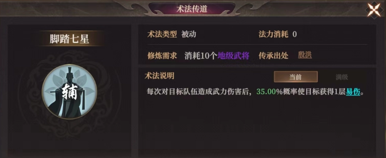 封神開天里的腳踏七星術法究竟如何呢?在封神開天這款游戲中,玩家可借助“武將傳道”這一功能,消耗特定武將從而獲取術法。接下來,便是小編為大家帶來的《封神:開天》腳踏七星術法效果,以及適合該術法的武將推薦,感興趣的小伙伴不妨一同來瞧瞧。