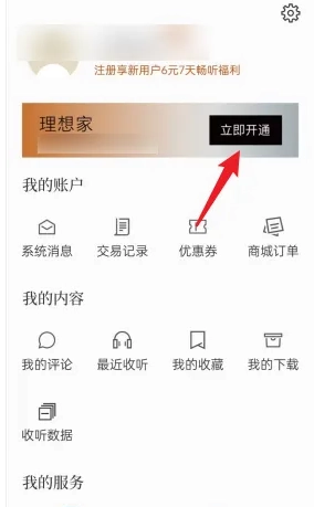 2. 在“我的”頁面,點擊下方的【立即開通】功能。