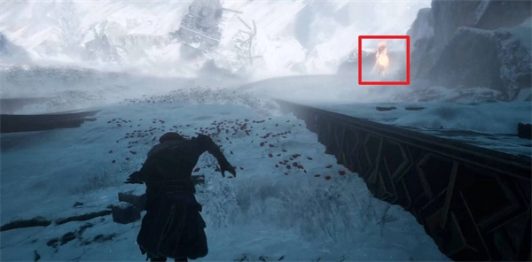 3、穿過雪地后,朝著火車頭區域進發,在左后方再拾取一枚【靈光色】。