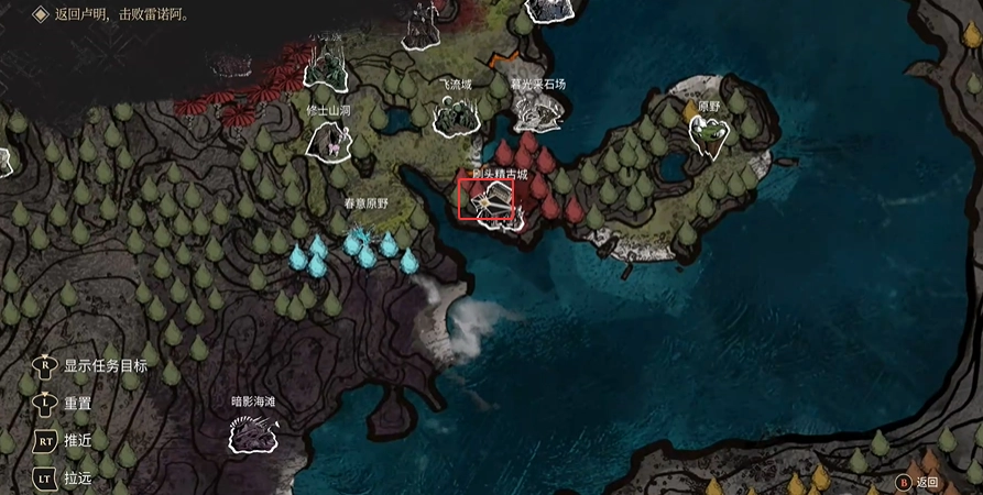 當玩家經由傳送門進入古城后,在古城的西北方向會出現一個紫色閃光點,玩家只需朝著該閃光點走去并拾取,即可獲得相應物品。