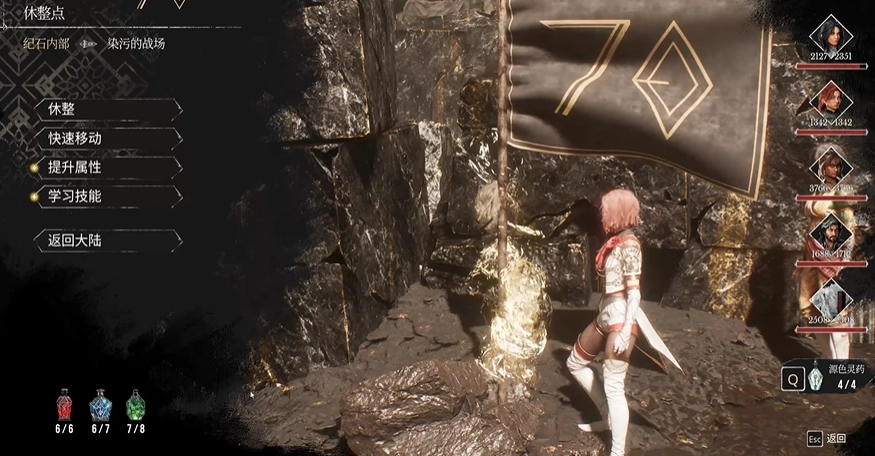 玩家前往紀石內部的遠征隊處,通過快速移動抵達染污的戰場。