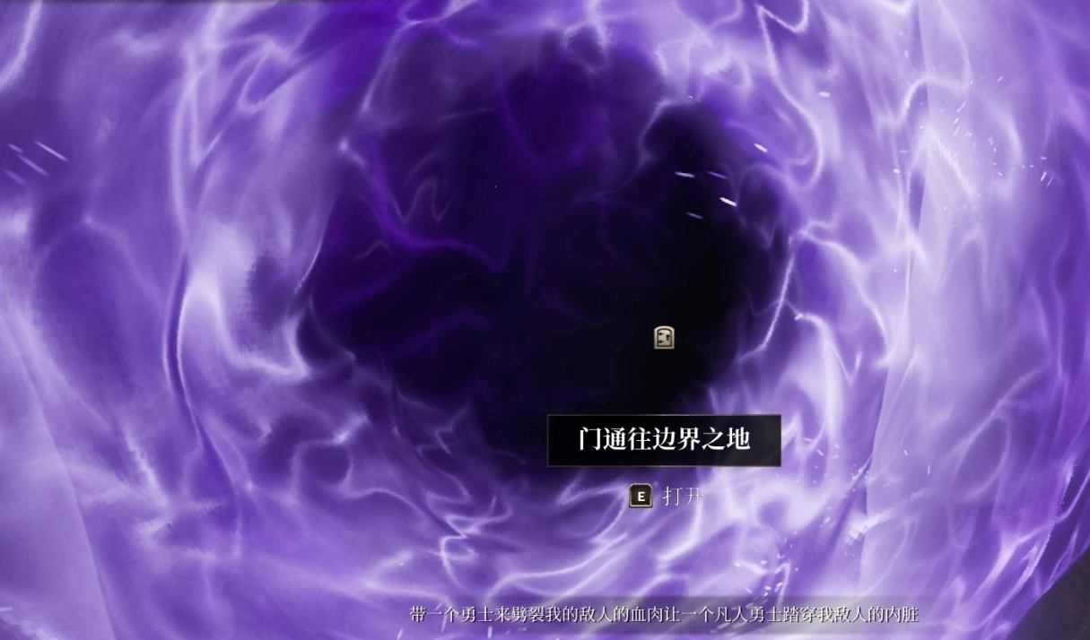 踏入紫色傳送門,抵達邊界之地,隨后在椅子上落座,與哈斯基爾展開交談。