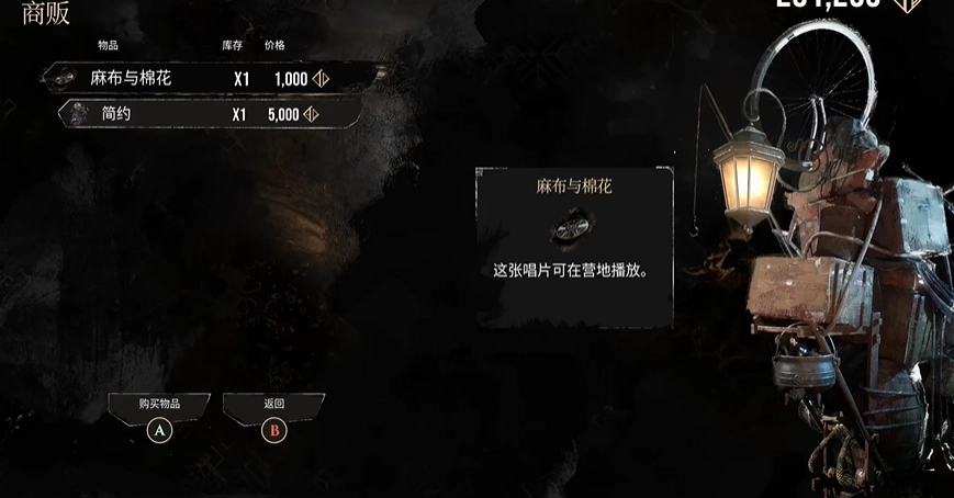 玩家與該角色對話并選擇交易,便能直接在物品欄中找到長篇麻布與棉花,花費1000幣購買即可獲得。