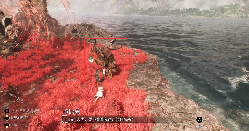 登上島嶼后,便能瞧見此地的商人盧比朱。