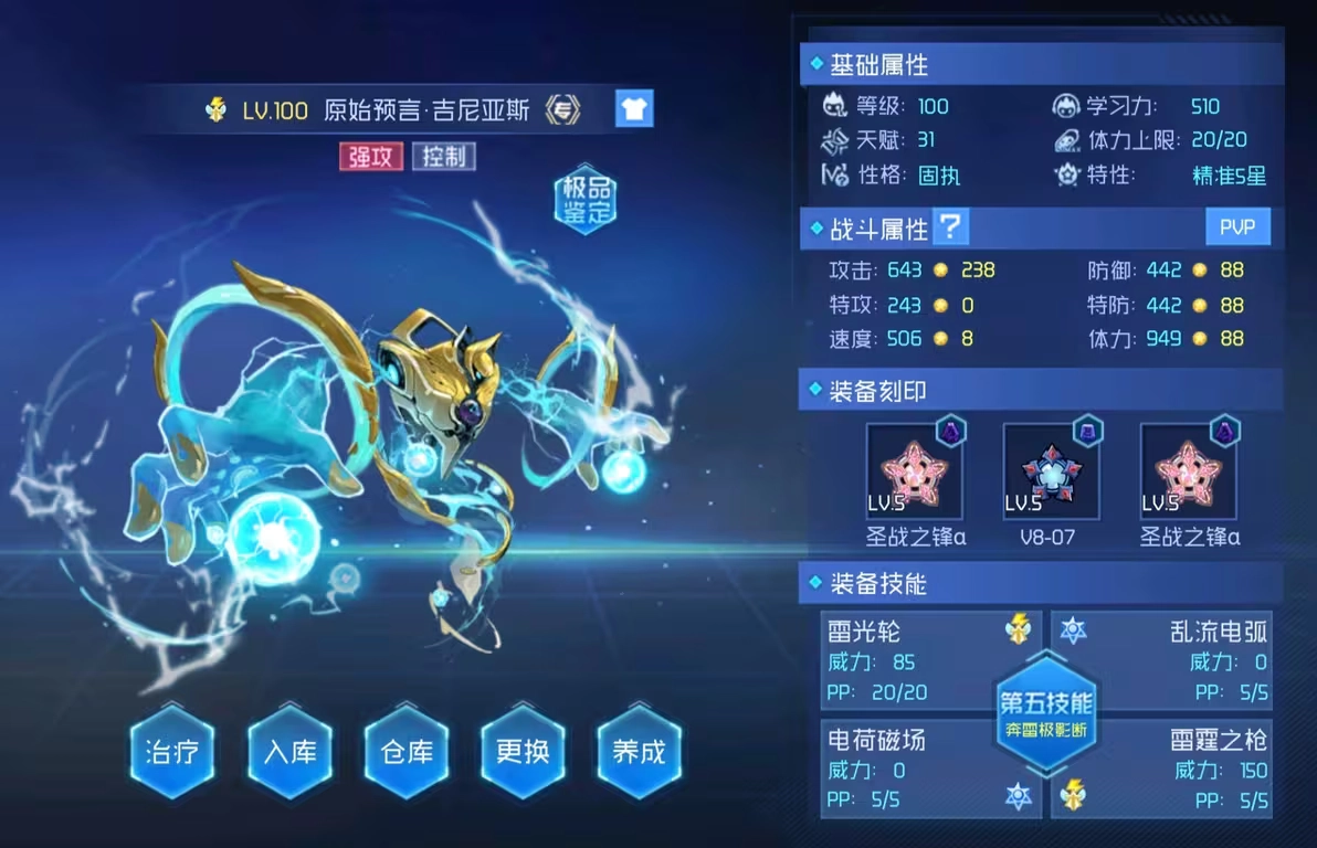 在輔助輸出層面,“猛烈撞擊”“電流撞擊”以及“超電波”形成了物理與特攻相互補充的組合。這一組合讓吉尼亞斯在遭遇屬性抗性復雜的敵人時,能夠靈活地對輸出方式做出調整,防止陷入技能單一的被動局面。而像“電磁射線”和“雷之槍”這類具備麻痹概率的技能,為吉尼亞斯在控制環節增添了帶有不確定性的打擊手段,進一步提升了戰術的多樣性。