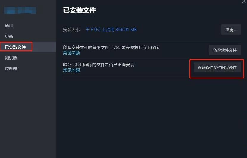2. 尋找到【已安裝文件】,接著點擊【驗證游戲文件的完整性】。