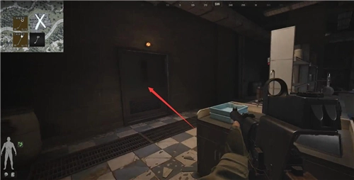 1. 走進工廠中亮著燈的房間的更衣室,把門打開。