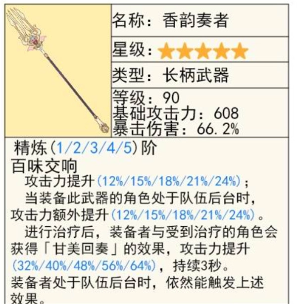 愛可菲:開啟大招后能夠站場(chǎng),持續(xù)提供奶量。其武器效果與角色技能契合度極高,建議將其當(dāng)作本命專武來攜帶。