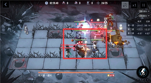 游戲開始后,操控胡椒向上移動一格,使其位于堇的前方,以此觸發堇的增傷被動效果。