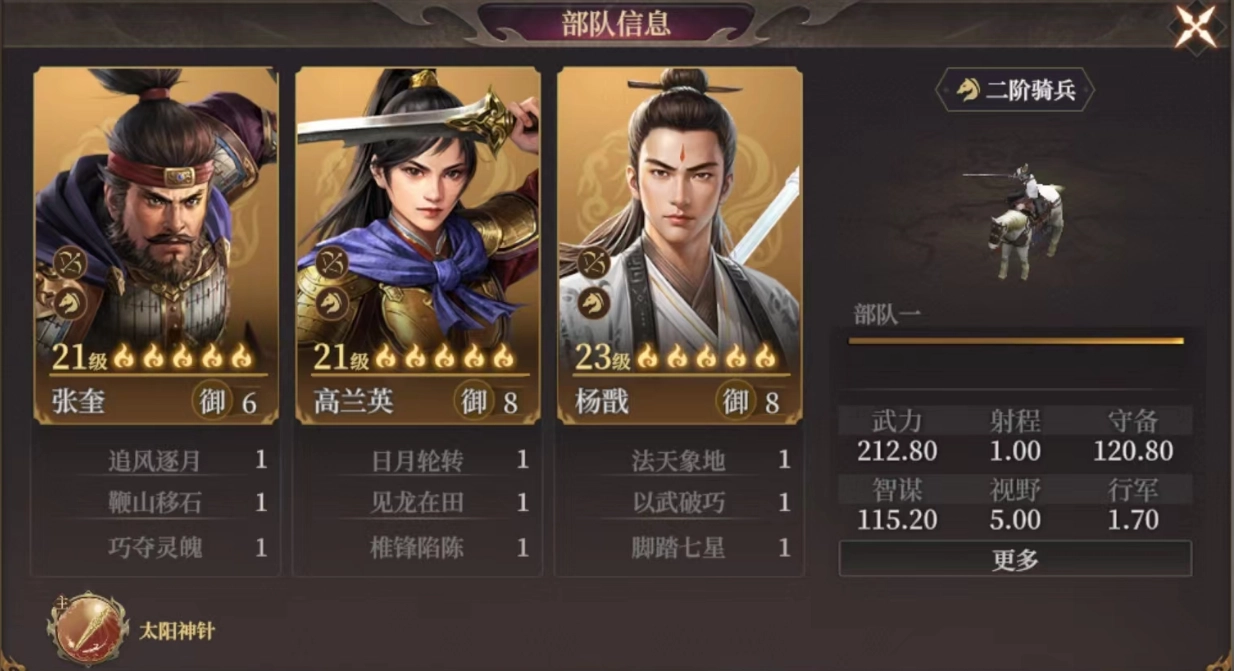 追擊騎陣容由張奎、高蘭英以及楊戩組成,該陣容在前中期進行開荒時表現出色,然而到了后期,其攻城能力相對較弱。
