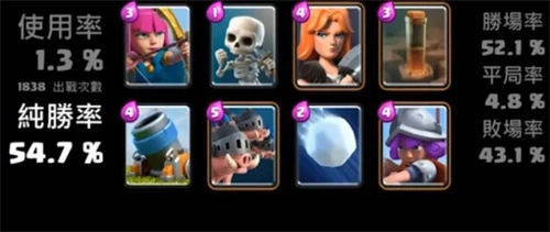 1、卡組分析卡牌的核心,是用來助攻偷塔的好幫手,但由于血量太低,所以需要進行卡牌搭配或出其不意的進攻,才能進行有效的爆炸性攻擊。