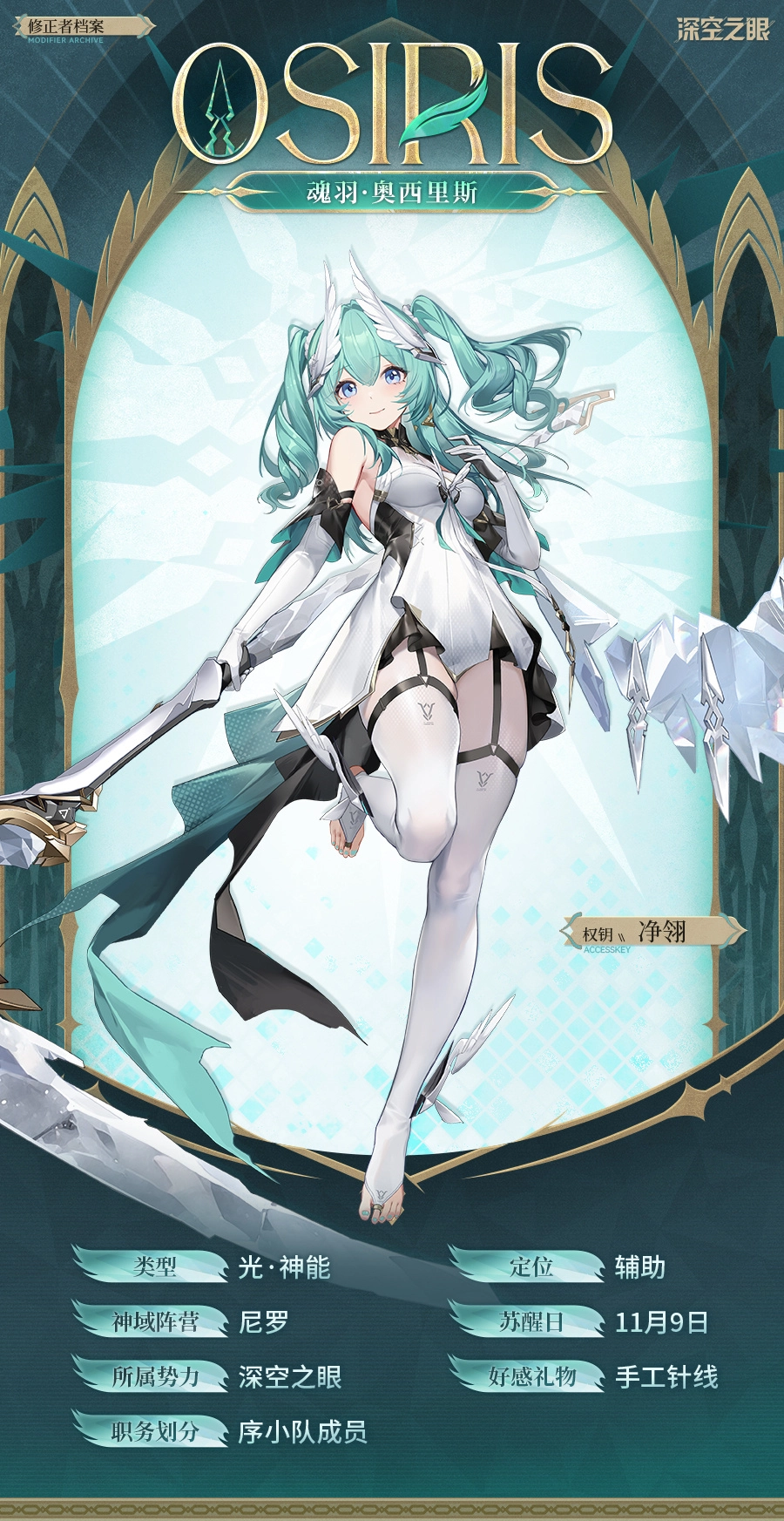 本篇要和大家分享的是《深空之眼》4.1版本新角色魂羽奧西里斯的技能介紹。奧西里斯屬于尼羅神系,是光屬性輔助角色,能為隊友提供屬性傷害、會心率、會心傷害等方面的增益效果。