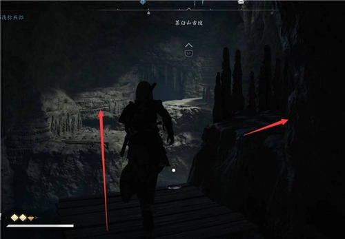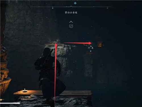接著向前行進,借助鉤繩躍至對面墻體,隨后往左攀爬。