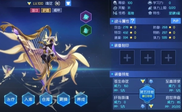魂弦的種族值總和達(dá)740 ,各項(xiàng)屬性分布相對(duì)均衡,這讓它在對(duì)戰(zhàn)時(shí)擁有多種戰(zhàn)術(shù)選擇。其體力值為167 ,奠定了一定的生存根基,戰(zhàn)斗中能承受一定傷害,不會(huì)輕易離場(chǎng)。特攻值142 ,搭配一系列圣靈?光系特攻技能,可對(duì)敵方造成較為可觀的特殊攻擊傷害。防御與特防均為112 ,面對(duì)物攻和特攻型對(duì)手,都能具備一定抗性,確保自身在戰(zhàn)斗中的穩(wěn)定性。速度值137 ,在速度線方面表現(xiàn)不錯(cuò),多數(shù)對(duì)戰(zhàn)場(chǎng)景里,能保證自身擁有合適的出手順序,以便更好發(fā)揮技能效果。攻擊值70 雖然不算突出,但在部分技能效果的助力下,也能起到一定的輔助作用。