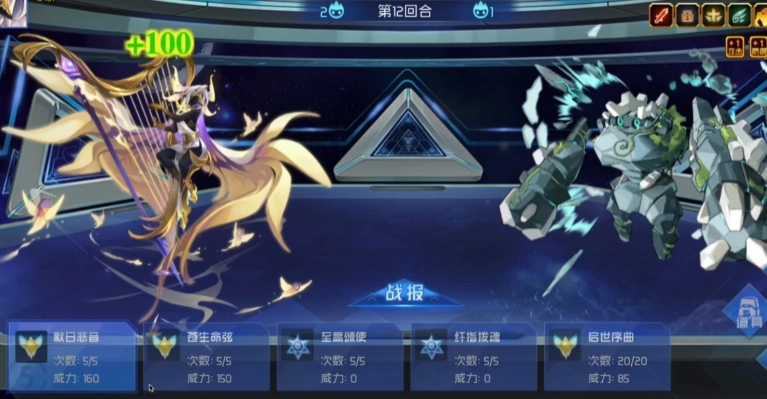 在隊(duì)友消耗了對(duì)手一定血量或者技能PP值后,魂弦中途上場(chǎng),此時(shí)若對(duì)手處于強(qiáng)化狀態(tài),優(yōu)先使用啟世序曲吸取其強(qiáng)化狀態(tài),若自身血量較低,可使用至高頌使吸取對(duì)手體力恢復(fù)自身,或者依靠纖指撥魂恢復(fù)體力,若對(duì)手血量較低,可根據(jù)自身狀態(tài)選擇使用至高頌使強(qiáng)化后,配合默日悲音等輸出技能,嘗試將對(duì)手擊敗。