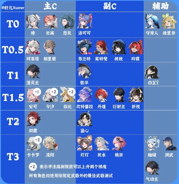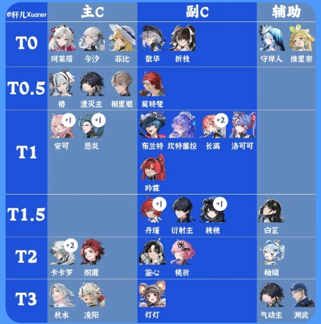 2、上期有不少人討論椿和菲比的位置是否弄反了,在此說明一下,本榜單采用的是0鏈角色,武器選擇除專武外最合適的。要是椿處于2 - 3鏈且有專武,那無疑是T0。在0鏈的基礎對比中,菲比在挑戰老深塔BOSS時表現更佳。而椿在新塔冥歌海墟的對群環境下絕對是T0。所以再次著重強調,由于個人角色共鳴鏈存在差異,角色強度梯度也會有所變動,具體可參考軒兒各角色培養攻略一圖流中關于角色共鳴鏈提升的內容再做考量。