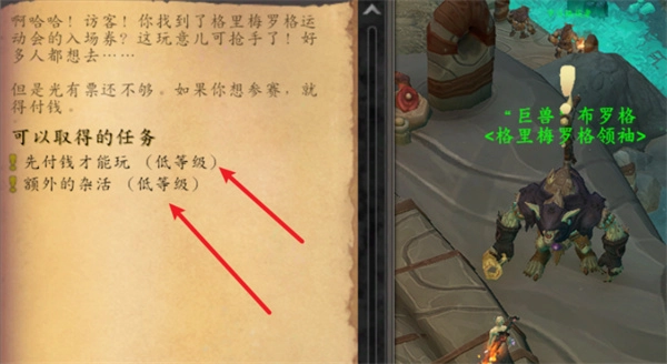 在與巨獸布羅格交談過后,接取“先付錢才能玩”以及“額外的雜活”這兩個任務。它們可是刷取峈姆鼴鼠人名望的關鍵所在。