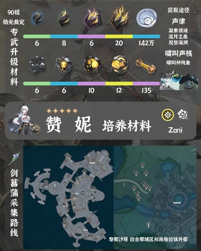 本篇給大家分享鳴潮新角色贊妮的培養(yǎng)材料匯總。贊妮是2.3版本的系角色,培養(yǎng)時需用到聲律系列、嘯叫聲核系列、聚方聲核系列等材料。