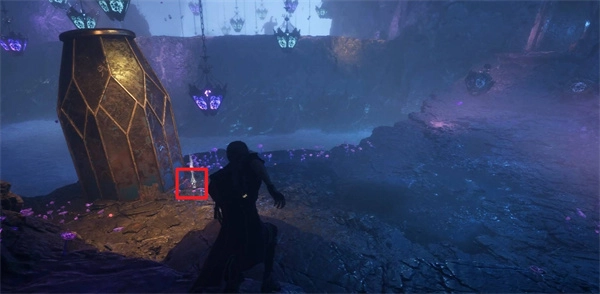 馬上向右行進,走進一個散發著紫色光芒的開口處。