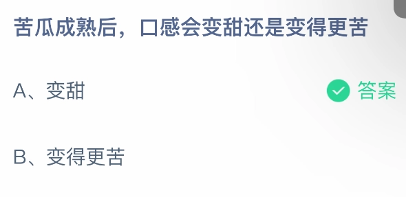 以下便是關于苦瓜成熟后口感究竟會變甜還是變得更苦的內容。這里是支付寶螞蟻莊園2025年5月24日的最新答案。若想獲取更多精彩資訊,敬請點擊關注3DM手游網的更新!