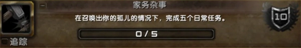 操作流程:召喚出孤兒,然后帶領(lǐng)他完成五個(gè)日常任務(wù)。這些任務(wù)的類型有釣魚、專業(yè)副本日常任務(wù)、烹飪?nèi)粘V悺?
