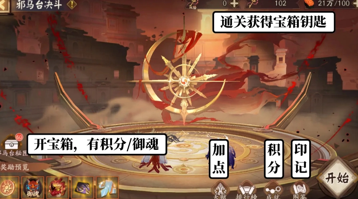 本篇要給大家分享的,是陰陽師新角色卑彌呼伴生活動里肉鴿模式“邪馬臺決斗”的玩法。此次活動會用到寶箱與鑰匙,而且寶箱和鑰匙都不存在儲存上限,因此在活動結束之前把箱子開完就可以了。