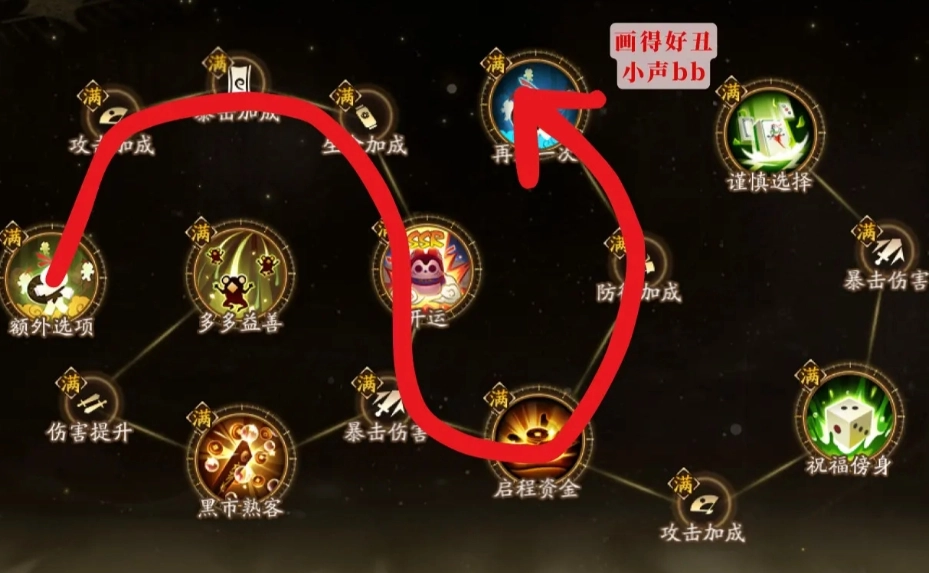 前期天賦加點方向,推薦按下方箭頭所示進行加點