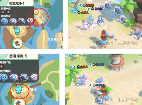 怒潮海灘4、5位置說明:傳送到4號地點后,朝著小島方向走;而5號地點就在傳送點旁邊。3號地點偶爾會出現目標,但大多還是集中在4號和5號地點。
