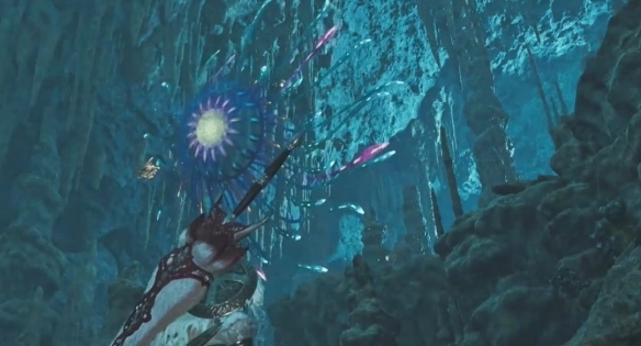 在《怪物獵人》的荒野中,大望花水母是一種外觀獨特的環境生物。它通常現身于涌油谷區域13號鐘乳洞營地下方的平臺上方,且能在豐饒期的白晝時段被發現。
