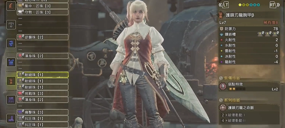 新添技能:設(shè)有三個一級孔位,可插入耐絕技能,以此規(guī)避暈船風(fēng)險,其余方面與強(qiáng)化雷顎黑蝕套保持一致。