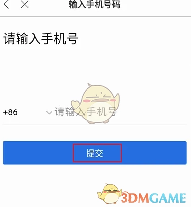 5、進入手機號碼輸入界面,輸入相關(guān)手機號后點擊提交,即可完成操作。