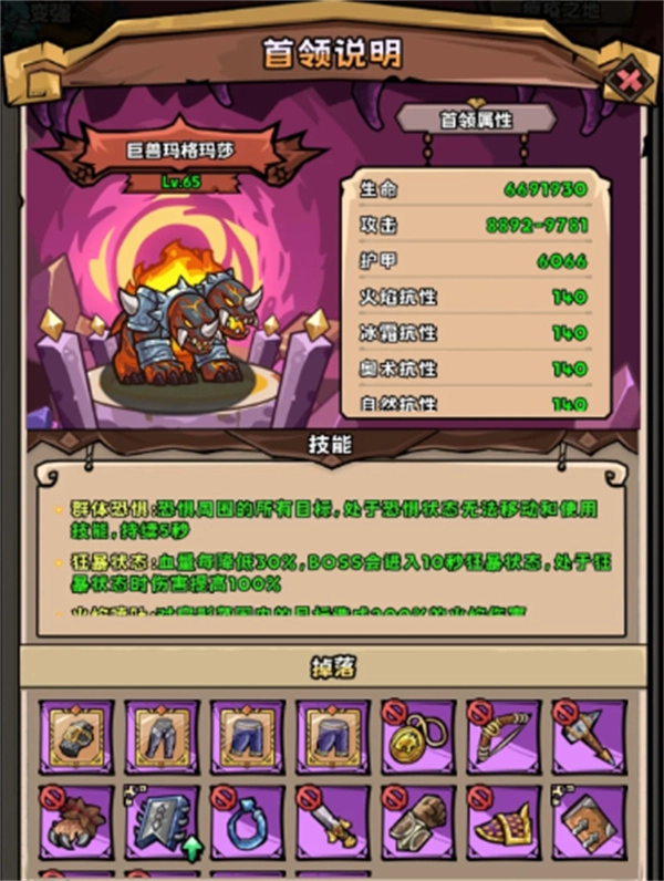 每當血量降低30%,就會進入狂暴狀態(tài),同時體型增大。