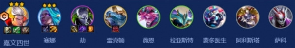后期階段,三星皇子能夠獨自在前排抵擋,關于劫的站位,建議放置在左三位置或者右三位置。