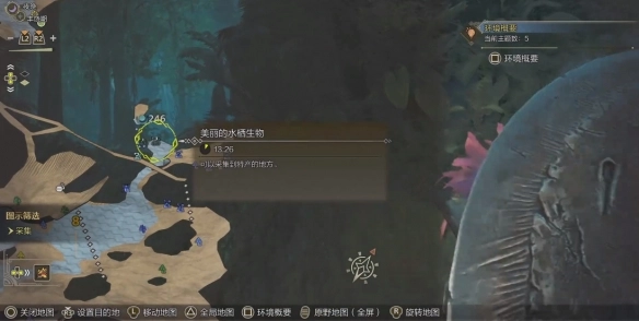 在怪物獵人的荒野世界里,瑰麗盾章菊螺屬于大型環境生物,能夠在緋紅森林區域8南部的水池釣到,從8區的帳篷跑過去就能抵達該水池。