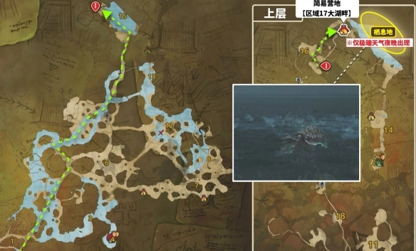 在極端天氣的夜晚,我們能夠去往緋紅森林區域17的釣魚地點。