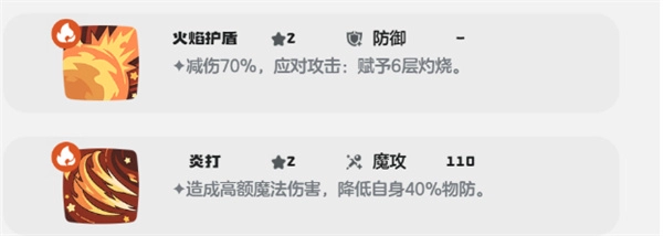 火焰護盾具備以下特性:能實現70%的傷害減免,角色攻擊時會附帶灼燒效果,該灼燒效果最多可疊加6層,它是達成全套輸出的重要基礎。