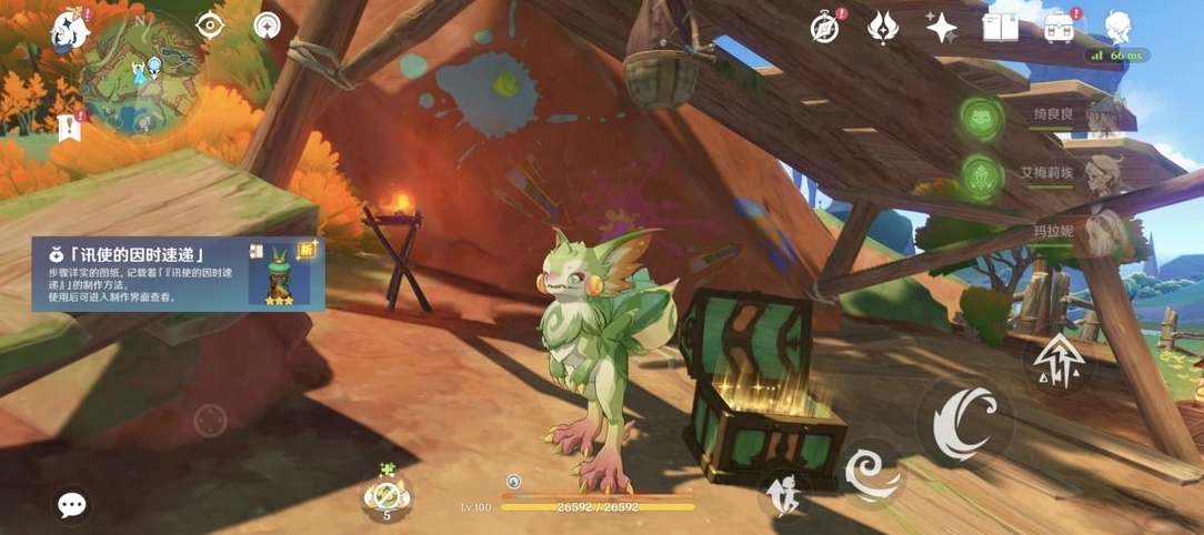 “踞石山中的懸樁”:順著大陸行至愚人眾的聚集地,接著朝里走。打開門后順著路前行便能看到。