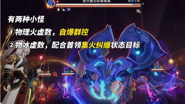 ②攜帶解控、免控或提高抗性的角色。碎星王蟲行動速度較慢,但其每次行動都會對我方單個角色造成一次高概率的糾纏控制效果。建議攜帶靈砂、砂金、加拉赫、藿藿、符玄、星期日、布洛妮婭等角色。若沒有上述角色,可考慮選擇能讓效果抵抗提高50%的buff2 。