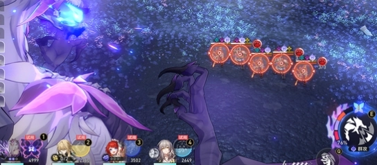 召喚出死龍之后,持續噴射直至其自爆就行。兩名輔助在整個過程中持續進行普攻,而羅剎與遐蝶使用戰技,如此操作恰好能夠召喚三次死龍。