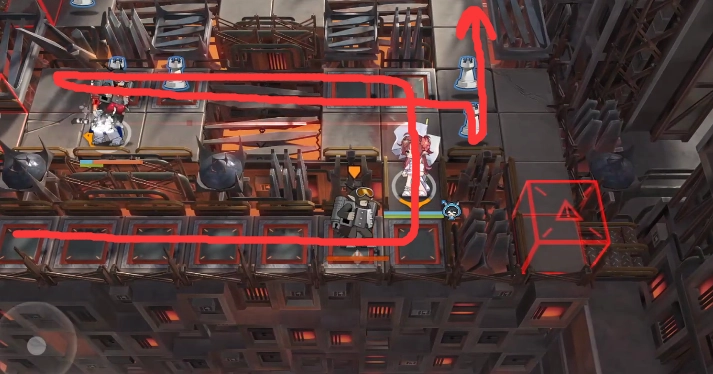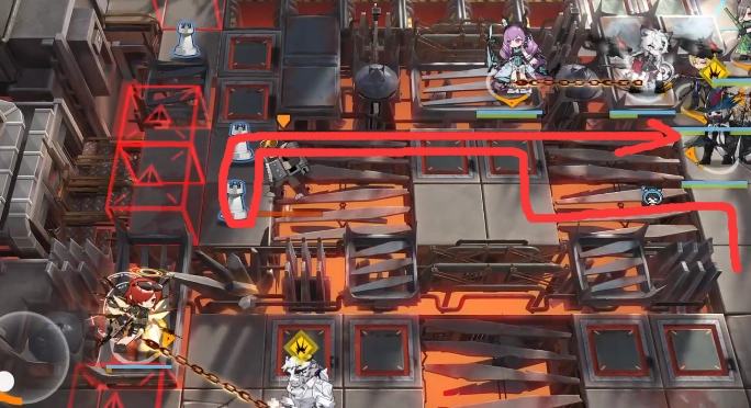 取完此處的標(biāo)志,便可朝著藍(lán)門行進(jìn)。抵達(dá)烏爾比安所在位置時會起飛,一路飛越門口的干員,隨后結(jié)束戰(zhàn)斗。