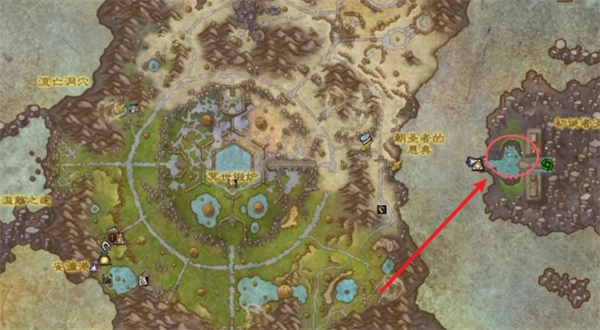 從傳送點出發,前往扎雷歿提斯地圖最右側的副本入口區域,具體位置在水池邊。這里是整個解謎活動的起始點。